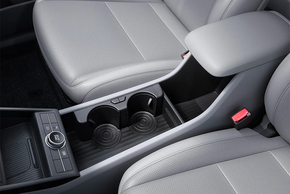 Carregamento sem fio para smartphones com tecnologia de indução localizado no console central sem a necessidade de cabos.